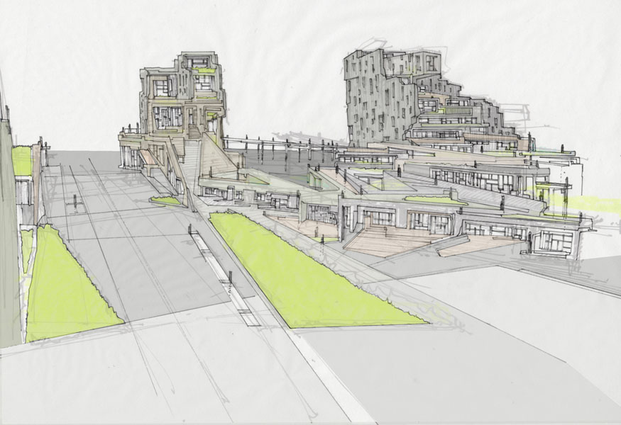 Our proposal is to create a podium roof level soft landscape that would provide shelter, habitat, visual variety, improved air quality and water treatment and also places for people to wander, explore, meet and relax.